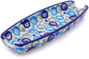 This Meadow Floret 13" Olive Dish was handmade and hand decorated in Boleslawiec, Poland by skilled artisans according to old traditional methods. This is a Polish pottery Signature Unikat, which means that it has been hand painted with both sponges and brushes and it is signed by the artist who painted it. Unikat pieces are the most intricate works of art. Larger Unikat items take hours of very careful work to finish. This Polish stoneware is microwave, dishwasher, freezer, and oven safe up to 480°F. It does not contain lead or cadmium. It is part of the Meadow Floret Collection.