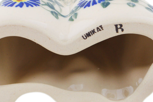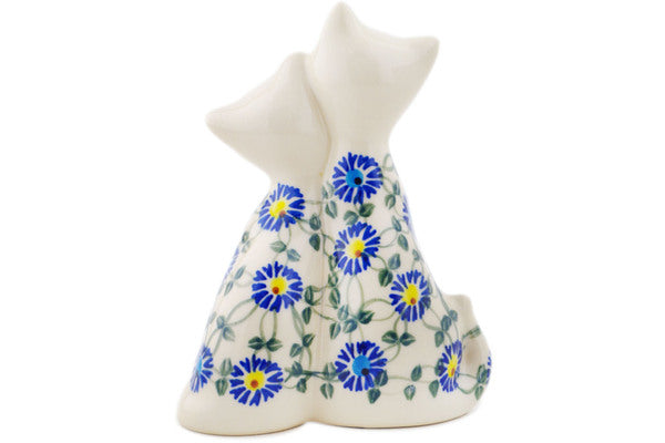 This Blue Thistle Beauty 7" Cat Figurine was handmade and hand decorated in Boleslawiec, Poland by skilled artisans according to old traditional methods. This Polish stoneware is microwave, dishwasher, freezer, and oven safe up to 480°F. It does not contain lead or cadmium. It is part of the Blue Thistle Beauty Collection.