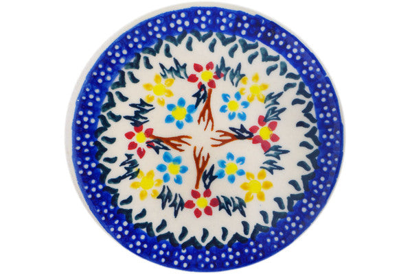 This Spring Flower Ring 4" Coaster was handmade and hand decorated in Boleslawiec, Poland by skilled artisans according to old traditional methods. This Polish stoneware is microwave, dishwasher, freezer, and oven safe up to 480°F. It does not contain lead or cadmium. It is part of the Spring Flower Ring Collection.