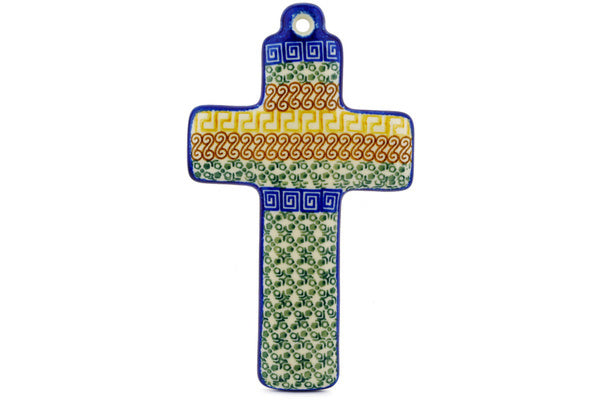 This Grecian Sea 8" Cross was handmade and hand decorated in Boleslawiec, Poland by skilled artisans according to old traditional methods. This Polish stoneware is microwave, dishwasher, freezer, and oven safe up to 480°F. It does not contain lead or cadmium. It is part of the Grecian Sea Collection.