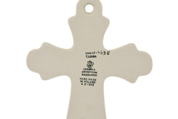 This Motherland Garden 8" Cross was handmade and hand decorated in Boleslawiec, Poland by skilled artisans according to old traditional methods. This is a Polish pottery Signature Unikat, which means that it has been hand painted with both sponges and brushes and it is signed by the artist who painted it. Unikat pieces are the most intricate works of art. Larger Unikat items take hours of very careful work to finish. This Polish stoneware is microwave, dishwasher, freezer, and oven safe up to 480°F. It does not contain lead or cadmium. It is part of the Motherland Garden Collection.