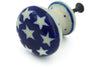 This Auntie Em Sapphire 1" Drawer knob 1-3/8 inch was handmade and hand decorated in Boleslawiec, Poland by skilled artisans according to old traditional methods. This Polish stoneware is microwave, dishwasher, freezer, and oven safe up to 480°F. It does not contain lead or cadmium. It is part of the Auntie Em Sapphire Collection.