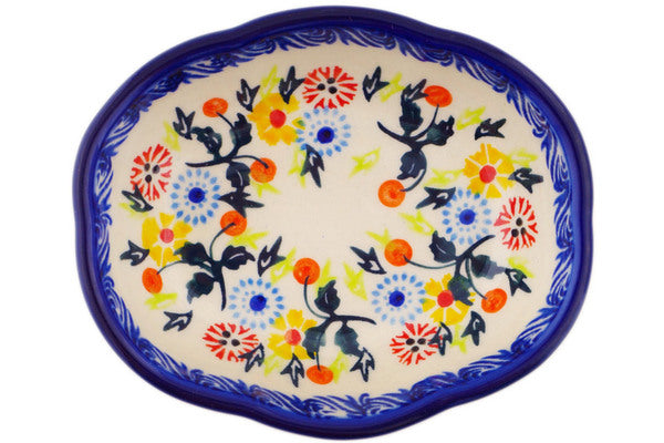This Pastel Spring Wreath 5" Soap Dish was handmade and hand decorated in Boleslawiec, Poland by skilled artisans according to old traditional methods. This Polish stoneware is microwave, dishwasher, freezer, and oven safe up to 480°F. It does not contain lead or cadmium. It is part of the Pastel Spring Wreath Collection.
