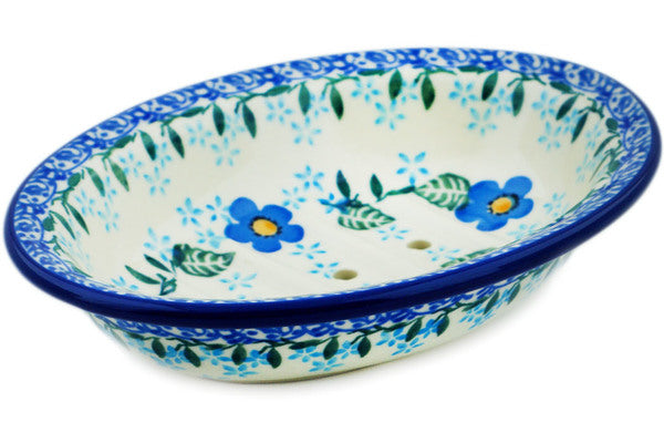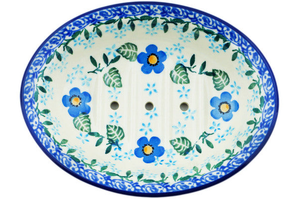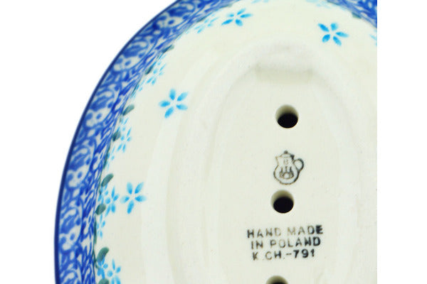 This Blue Joy 6" Soap Dish was handmade and hand decorated in Boleslawiec, Poland by skilled artisans according to old traditional methods. This Polish stoneware is microwave, dishwasher, freezer, and oven safe up to 480°F. It does not contain lead or cadmium. It is part of the Blue Joy Collection.