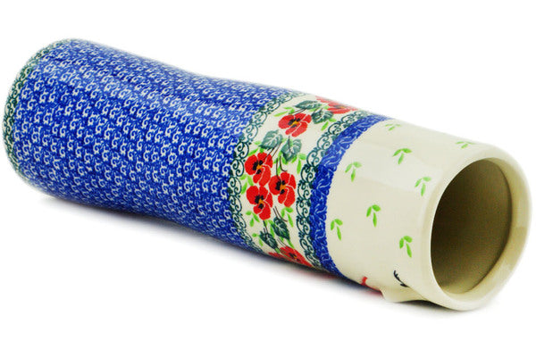 This Delicate Red Flowers 12" Vase was handmade and hand decorated in Boleslawiec, Poland by skilled artisans according to old traditional methods. This Polish stoneware is microwave, dishwasher, freezer, and oven safe up to 480°F. It does not contain lead or cadmium. It is part of the Delicate Red Flowers Collection.