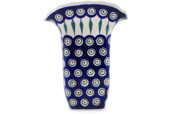 This Peacock Leaves 7" Vase was handmade and hand decorated in Boleslawiec, Poland by skilled artisans according to old traditional methods. This Polish stoneware is microwave, dishwasher, freezer, and oven safe up to 480°F. It does not contain lead or cadmium. It is part of the Peacock Leaves Collection.