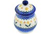This Blue Zinnia 5" Apple Shaped Jar was handmade and hand decorated in Boleslawiec, Poland by skilled artisans according to old traditional methods. This Polish stoneware is microwave, dishwasher, freezer, and oven safe up to 480°F. It does not contain lead or cadmium. It is part of the Blue Zinnia Collection.