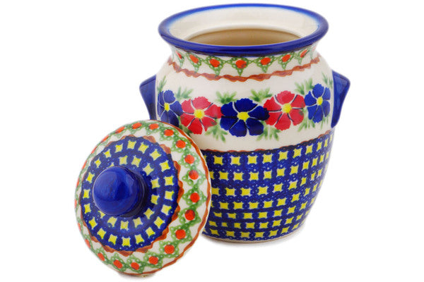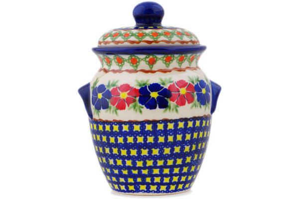 This Paradise Poppy 7" Jar with Lid and Handles was handmade and hand decorated in Boleslawiec, Poland by skilled artisans according to old traditional methods. This Polish stoneware is microwave, dishwasher, freezer, and oven safe up to 480°F. It does not contain lead or cadmium. It is part of the Paradise Poppy Collection.