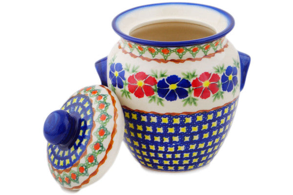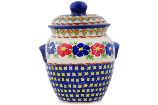This Paradise Poppy 7" Jar with Lid and Handles was handmade and hand decorated in Boleslawiec, Poland by skilled artisans according to old traditional methods. This Polish stoneware is microwave, dishwasher, freezer, and oven safe up to 480°F. It does not contain lead or cadmium. It is part of the Paradise Poppy Collection.