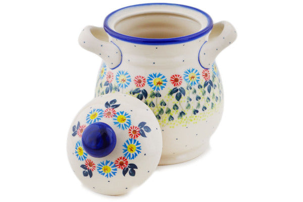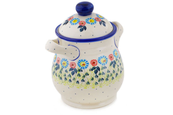 This Long-stemmed Beauties 8" Jar with Lid and Handles was handmade and hand decorated in Boleslawiec, Poland by skilled artisans according to old traditional methods. This Polish stoneware is microwave, dishwasher, freezer, and oven safe up to 480°F. It does not contain lead or cadmium. It is part of the Long-stemmed Beauties Collection.