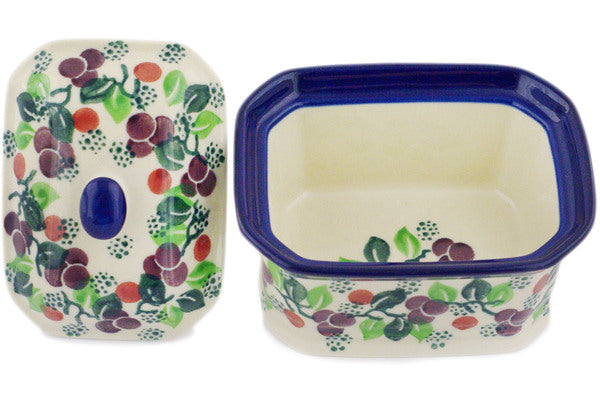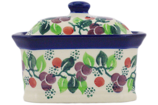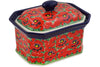 This Cherries Jubilee 4" Mini Cake Box 4", Salt Box, was handmade and hand decorated in Boleslawiec, Poland by skilled artisans according to old traditional methods. This Polish stoneware is microwave, dishwasher, freezer, and oven safe up to 480°F. It does not contain lead or cadmium. It is part of the Cherries Jubilee Collection.