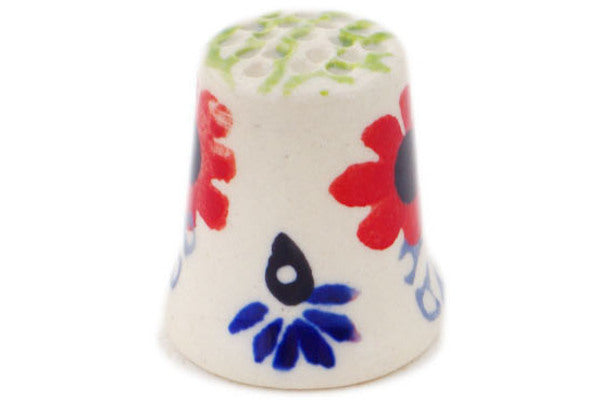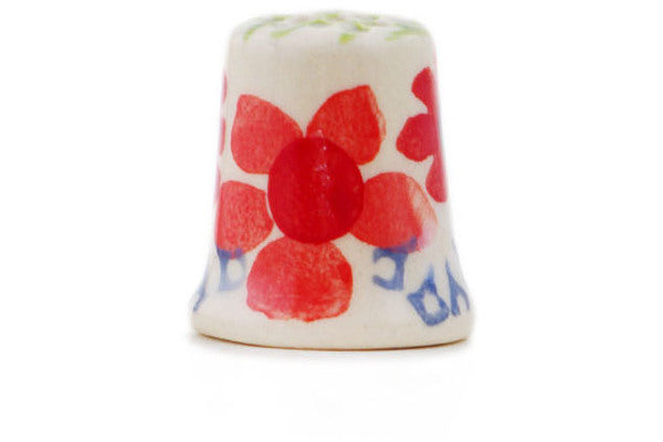 This Red Blossom 1" Thimble was handmade and hand decorated in Boleslawiec, Poland by skilled artisans according to old traditional methods. This Polish stoneware is microwave, dishwasher, freezer, and oven safe up to 480°F. It does not contain lead or cadmium. It is part of the Red Blossom Collection.