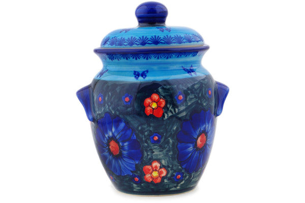 Jar with Lid and Handles 9" Midnight Garden Theme UNIKAT
