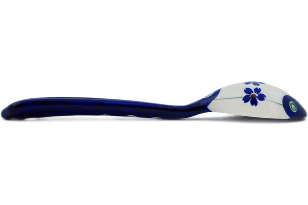 This Flowering Peacock 7" Spoon was handmade and hand decorated in Boleslawiec, Poland by skilled artisans according to old traditional methods. This Polish stoneware is microwave, dishwasher, freezer, and oven safe up to 480°F. It does not contain lead or cadmium. It is part of the Flowering Peacock Collection.