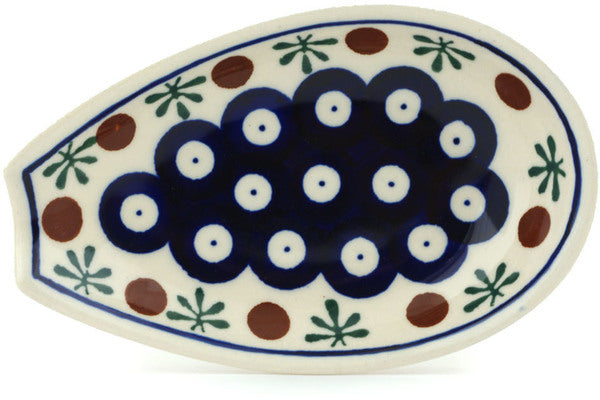 This Mosquito 5" Spoon Rest was handmade and hand decorated in Boleslawiec, Poland by skilled artisans according to old traditional methods. This Polish stoneware is microwave, dishwasher, freezer, and oven safe up to 480°F. It does not contain lead or cadmium. It is part of the Mosquito Collection.