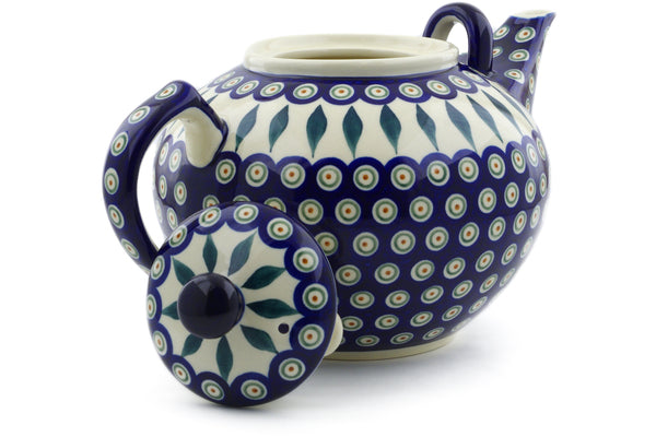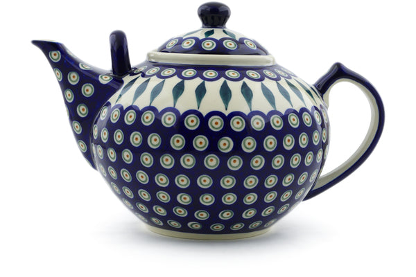 This Peacock Leaves 101 oz Tea or Coffee Pot was handmade and hand decorated in Boleslawiec, Poland by skilled artisans according to old traditional methods. This Polish stoneware is microwave, dishwasher, freezer, and oven safe up to 480°F. It does not contain lead or cadmium. It is part of the Peacock Leaves Collection.