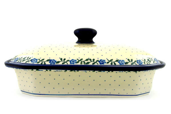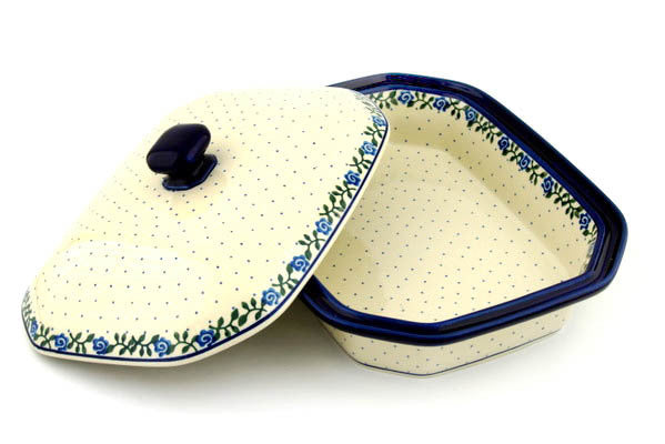 Dish with Cover 12" Blue Rose Vine Theme
