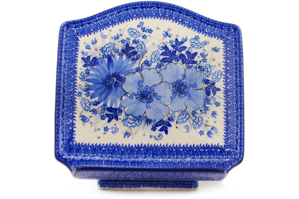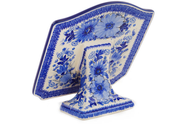This Blue Wildflower Patch 9" Book Stand was handmade and hand decorated in Boleslawiec, Poland by skilled artisans according to old traditional methods. This is a Polish pottery Signature Unikat, which means that it has been hand painted with both sponges and brushes and it is signed by the artist who painted it. Unikat pieces are the most intricate works of art. Larger Unikat items take hours of very careful work to finish. This Polish stoneware is microwave, dishwasher, freezer, and oven safe up to 480°F. It does not contain lead or cadmium. It is part of the Blue Wildflower Patch Collection.