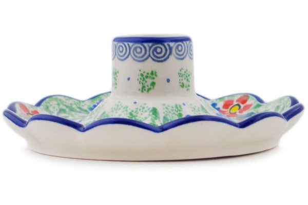 This Lovely Hibiscus 5" Candle Holder was handmade and hand decorated in Boleslawiec, Poland by skilled artisans according to old traditional methods. This is a Polish pottery Signature Unikat, which means that it has been hand painted with both sponges and brushes and it is signed by the artist who painted it. Unikat pieces are the most intricate works of art. Larger Unikat items take hours of very careful work to finish. This Polish stoneware is microwave, dishwasher, freezer, and oven safe up to 480°F. It does not contain lead or cadmium. It is part of the Lovely Hibiscus Collection.