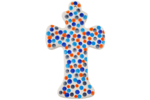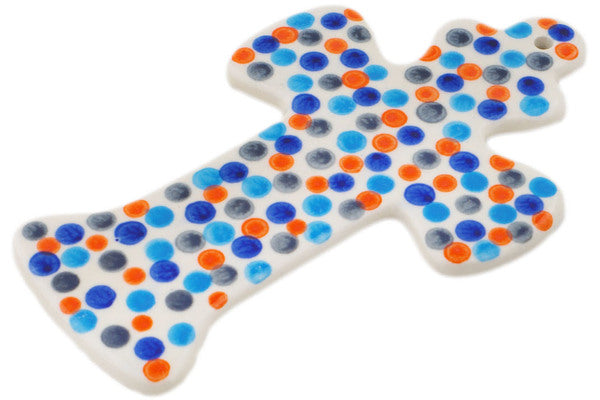 This Polka Dot Frenzy 7" Cross was handmade and hand decorated in Boleslawiec, Poland by skilled artisans according to old traditional methods. This Polish stoneware is microwave, dishwasher, freezer, and oven safe up to 480°F. It does not contain lead or cadmium. It is part of the Polka Dot Frenzy Collection.