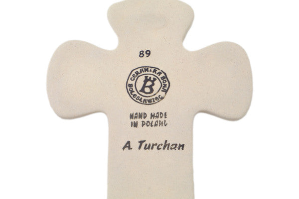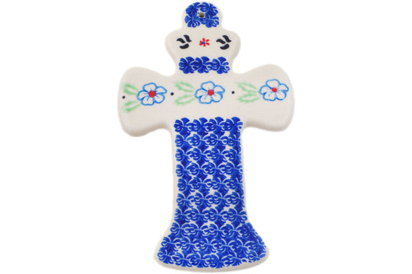 This Sweet Day 7" Cross was handmade and hand decorated in Boleslawiec, Poland by skilled artisans according to old traditional methods. This Polish stoneware is microwave, dishwasher, freezer, and oven safe up to 480°F. It does not contain lead or cadmium. It is part of the Sweet Day Collection.
