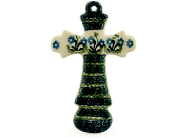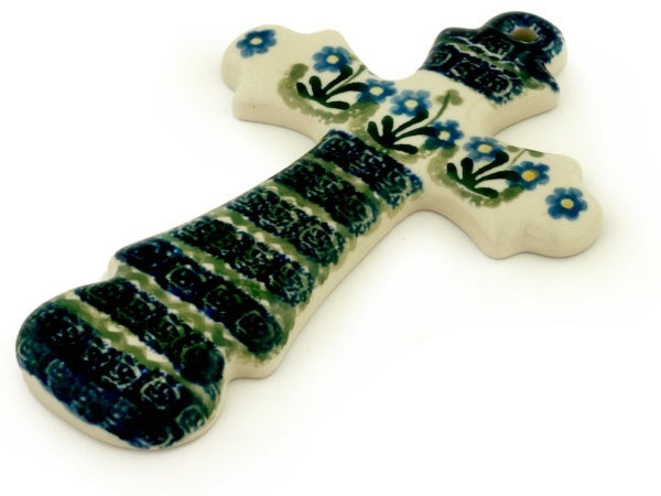 This Blue Daisy Circle 8" Cross was handmade and hand decorated in Boleslawiec, Poland by skilled artisans according to old traditional methods. This Polish stoneware is microwave, dishwasher, freezer, and oven safe up to 480°F. It does not contain lead or cadmium. It is part of the Blue Daisy Circle Collection.