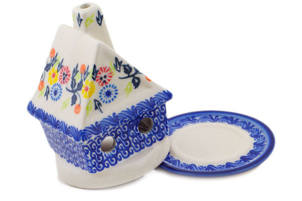 This Pastel Spring Wreath 5" House Shaped Candle Holder was handmade and hand decorated in Boleslawiec, Poland by skilled artisans according to old traditional methods. This Polish stoneware is microwave, dishwasher, freezer, and oven safe up to 480°F. It does not contain lead or cadmium. It is part of the Pastel Spring Wreath Collection.