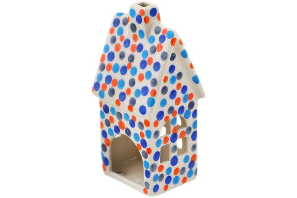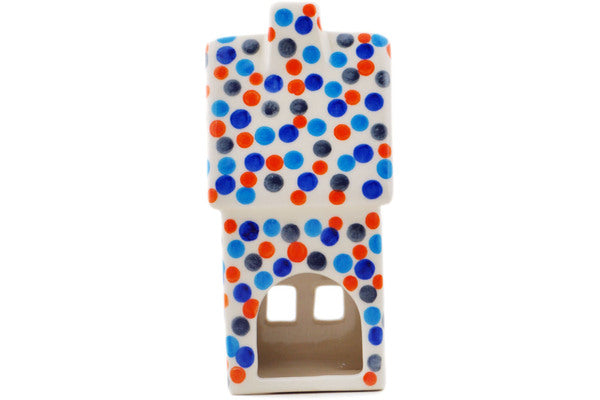This Polka Dot Frenzy 6" House Shaped Candle Holder was handmade and hand decorated in Boleslawiec, Poland by skilled artisans according to old traditional methods. This Polish stoneware is microwave, dishwasher, freezer, and oven safe up to 480°F. It does not contain lead or cadmium. It is part of the Polka Dot Frenzy Collection.