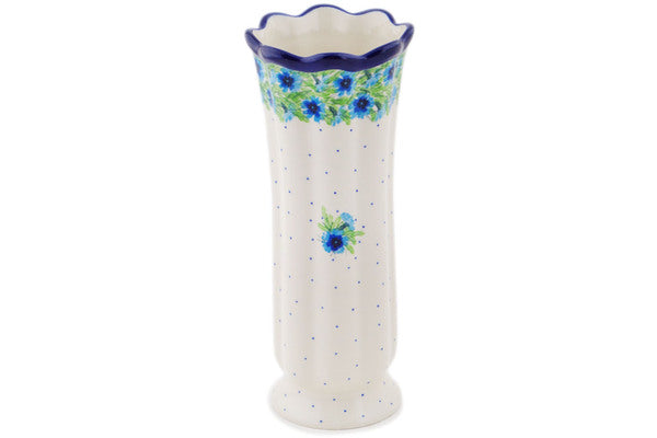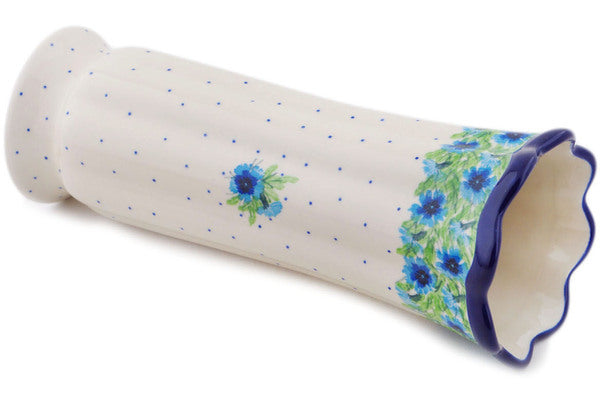 This Springing Into Spring 11" Vase was handmade and hand decorated in Boleslawiec, Poland by skilled artisans according to old traditional methods. This is a Polish pottery Signature Unikat, which means that it has been hand painted with both sponges and brushes and it is signed by the artist who painted it. Unikat pieces are the most intricate works of art. Larger Unikat items take hours of very careful work to finish. This Polish stoneware is microwave, dishwasher, freezer, and oven safe up to 480°F. It does not contain lead or cadmium. It is part of the Springing Into Spring Collection.
