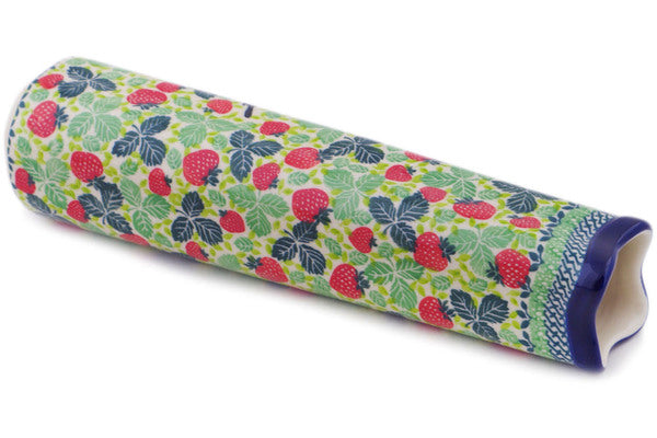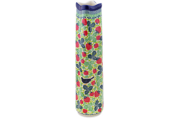 This Raven's Red Berries 13" Vase was handmade and hand decorated in Boleslawiec, Poland by skilled artisans according to old traditional methods. This is a Polish pottery Signature Unikat, which means that it has been hand painted with both sponges and brushes and it is signed by the artist who painted it. Unikat pieces are the most intricate works of art. Larger Unikat items take hours of very careful work to finish. This Polish stoneware is microwave, dishwasher, freezer, and oven safe up to 480°F. It does not contain lead or cadmium. It is part of the Raven's Red Berries Collection.