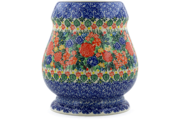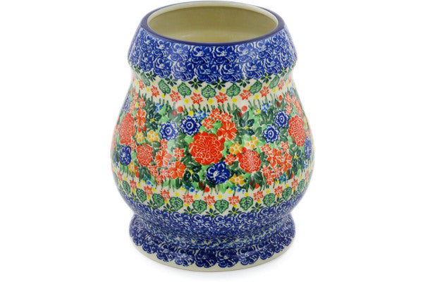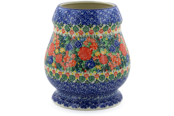 This Red Bouquet 9" Vase was handmade and hand decorated in Boleslawiec, Poland by skilled artisans according to old traditional methods. This is a Polish pottery Signature Unikat, which means that it has been hand painted with both sponges and brushes and it is signed by the artist who painted it. Unikat pieces are the most intricate works of art. Larger Unikat items take hours of very careful work to finish. This Polish stoneware is microwave, dishwasher, freezer, and oven safe up to 480°F. It does not contain lead or cadmium. It is part of the Red Bouquet Collection.