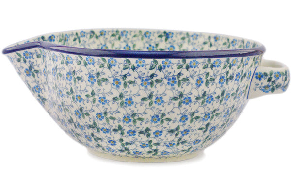 This Summer Wind 12" Batter Bowl was handmade and hand decorated in Boleslawiec, Poland by skilled artisans according to old traditional methods. This Polish stoneware is microwave, dishwasher, freezer, and oven safe up to 480°F. It does not contain lead or cadmium. It is part of the Summer Wind Collection.