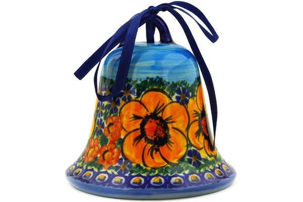 This Floral Serenade 4" Bell Ornament was handmade and hand decorated in Boleslawiec, Poland by skilled artisans according to old traditional methods. This is a Polish pottery Signature Unikat, which means that it has been hand painted with both sponges and brushes and it is signed by the artist who painted it. Unikat pieces are the most intricate works of art. Larger Unikat items take hours of very careful work to finish. This Polish stoneware is microwave, dishwasher, freezer, and oven safe up to 480°F. It does not contain lead or cadmium. It is part of the Floral Serenade Collection.
