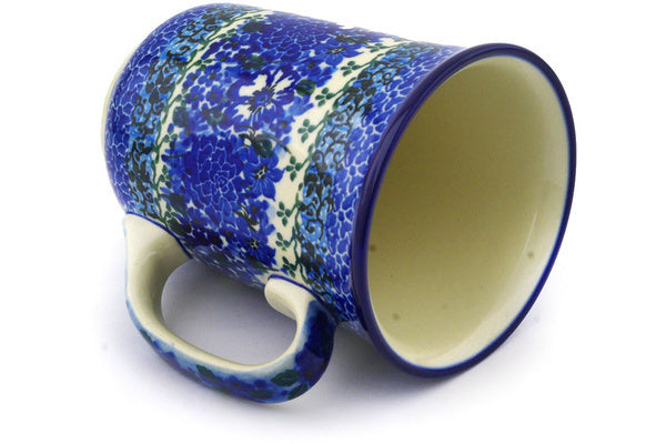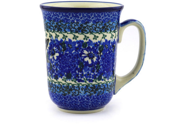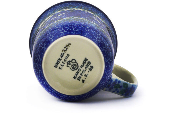 This Hummingbird Blue 17 oz Bistro Mug was handmade and hand decorated in Boleslawiec, Poland by skilled artisans according to old traditional methods. This is a Polish pottery Signature Unikat, which means that it has been hand painted with both sponges and brushes and it is signed by the artist who painted it. Unikat pieces are the most intricate works of art. Larger Unikat items take hours of very careful work to finish. This Polish stoneware is microwave, dishwasher, freezer, and oven safe up to 480°F. It does not contain lead or cadmium. It is part of the Hummingbird Blue Collection.