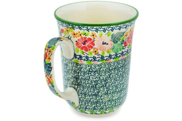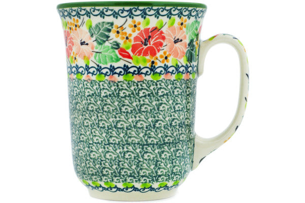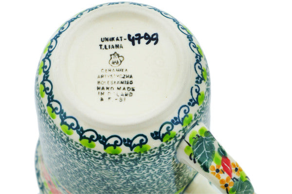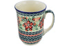 This Morning Divine 17 oz Bistro Mug was handmade and hand decorated in Boleslawiec, Poland by skilled artisans according to old traditional methods. This is a Polish pottery Signature Unikat, which means that it has been hand painted with both sponges and brushes and it is signed by the artist who painted it. Unikat pieces are the most intricate works of art. Larger Unikat items take hours of very careful work to finish. This Polish stoneware is microwave, dishwasher, freezer, and oven safe up to 480°F. It does not contain lead or cadmium. It is part of the Morning Divine Collection.