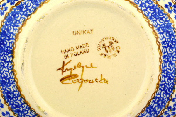This Midnight 10" Bowl was handmade and hand decorated in Boleslawiec, Poland by skilled artisans according to old traditional methods. This is a Polish pottery Signature Unikat, which means that it has been hand painted with both sponges and brushes and it is signed by the artist who painted it. Unikat pieces are the most intricate works of art. Larger Unikat items take hours of very careful work to finish. This Polish stoneware is microwave, dishwasher, freezer, and oven safe up to 480°F. It does not contain lead or cadmium. It is part of the Midnight Collection.