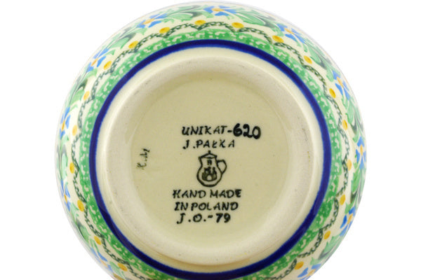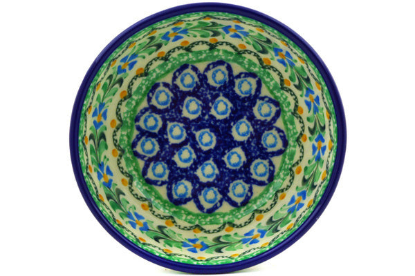 This Top Of The Morning 5" Bowl was handmade and hand decorated in Boleslawiec, Poland by skilled artisans according to old traditional methods. This is a Polish pottery Signature Unikat, which means that it has been hand painted with both sponges and brushes and it is signed by the artist who painted it. Unikat pieces are the most intricate works of art. Larger Unikat items take hours of very careful work to finish. This Polish stoneware is microwave, dishwasher, freezer, and oven safe up to 480°F. It does not contain lead or cadmium. It is part of the Top Of The Morning Collection.