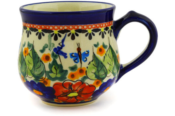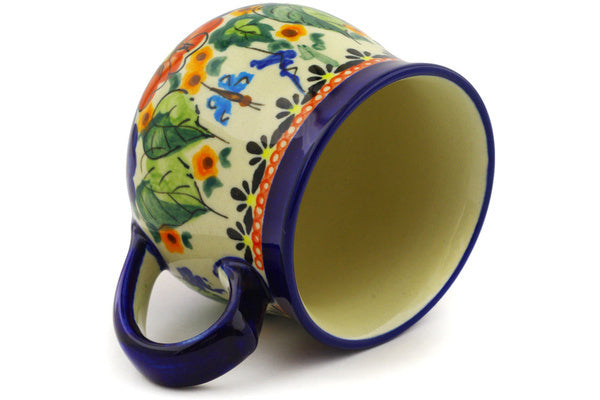 This Spring Splendor Small Bubble Mug was handmade and hand decorated in Boleslawiec, Poland by skilled artisans according to old traditional methods. This is a Polish pottery Signature Unikat, which means that it has been hand painted with both sponges and brushes and it is signed by the artist who painted it. Unikat pieces are the most intricate works of art. Larger Unikat items take hours of very careful work to finish. This Polish stoneware is microwave, dishwasher, freezer, and oven safe up to 480°F. It does not contain lead or cadmium. It is part of the Spring Splendor Collection.