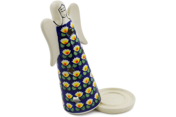 This Waterlily 8" Candle Holder was handmade and hand decorated in Boleslawiec, Poland by skilled artisans according to old traditional methods. This Polish stoneware is microwave, dishwasher, freezer, and oven safe up to 480°F. It does not contain lead or cadmium. It is part of the Waterlily Collection.