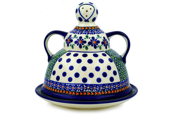 This Gingham Flowers 8" Cheese Lady was handmade and hand decorated in Boleslawiec, Poland by skilled artisans according to old traditional methods. This Polish stoneware is microwave, dishwasher, freezer, and oven safe up to 480°F. It does not contain lead or cadmium. It is part of the Gingham Flowers Collection.