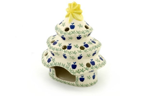 This From The Apple Tree 7" Christmas Tree Candle Holder was handmade and hand decorated in Boleslawiec, Poland by skilled artisans according to old traditional methods. This Polish stoneware is microwave, dishwasher, freezer, and oven safe up to 480°F. It does not contain lead or cadmium. It is part of the From The Apple Tree Collection.