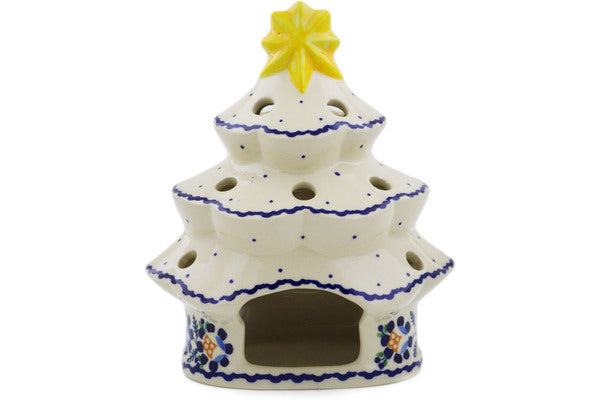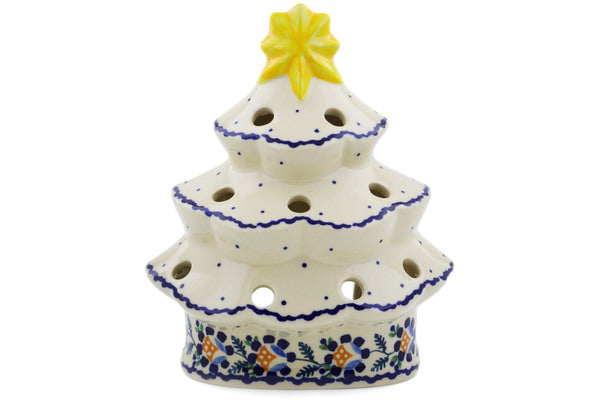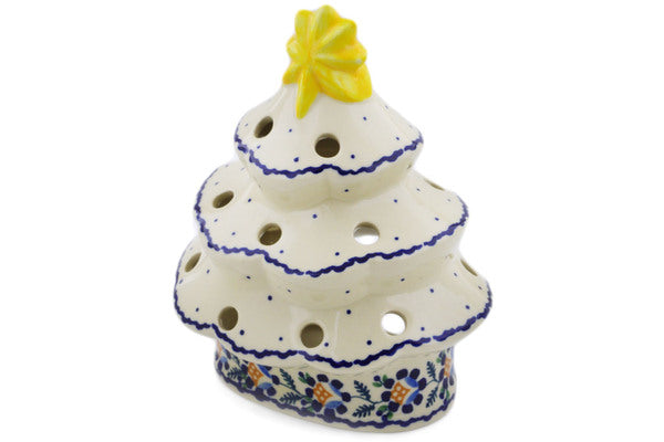 This Orange And Blue Flower 7" Christmas Tree Candle Holder was handmade and hand decorated in Boleslawiec, Poland by skilled artisans according to old traditional methods. This Polish stoneware is microwave, dishwasher, freezer, and oven safe up to 480°F. It does not contain lead or cadmium. It is part of the Orange And Blue Flower Collection.