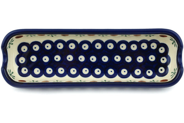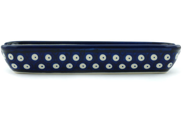 This Mosquito 9" Corn Tray was handmade and hand decorated in Boleslawiec, Poland by skilled artisans according to old traditional methods. This Polish stoneware is microwave, dishwasher, freezer, and oven safe up to 480°F. It does not contain lead or cadmium. It is part of the Mosquito Collection.