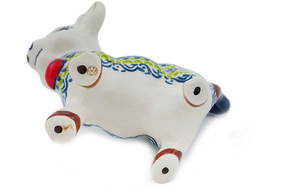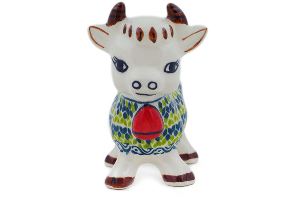 This Green Leaves 5" Cow Figurine was handmade and hand decorated in Boleslawiec, Poland by skilled artisans according to old traditional methods. This Polish stoneware is microwave, dishwasher, freezer, and oven safe up to 480°F. It does not contain lead or cadmium. It is part of the Green Leaves Collection.