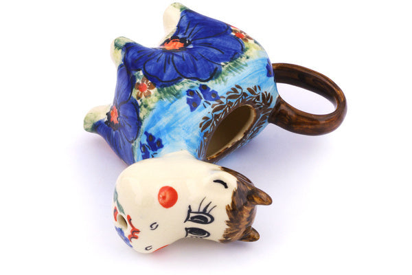 This Fresh Air 5 oz Cow Shaped Creamer was handmade and hand decorated in Boleslawiec, Poland by skilled artisans according to old traditional methods. This is a Polish pottery Signature Unikat, which means that it has been hand painted with both sponges and brushes and it is signed by the artist who painted it. Unikat pieces are the most intricate works of art. Larger Unikat items take hours of very careful work to finish. This Polish stoneware is microwave, dishwasher, freezer, and oven safe up to 480°F. It does not contain lead or cadmium. It is part of the Fresh Air Collection.
