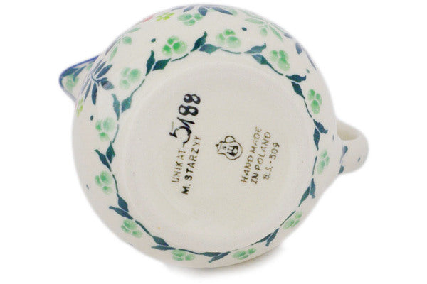 This Robin & Wren 7 oz Creamer was handmade and hand decorated in Boleslawiec, Poland by skilled artisans according to old traditional methods. This is a Polish pottery Signature Unikat, which means that it has been hand painted with both sponges and brushes and it is signed by the artist who painted it. Unikat pieces are the most intricate works of art. Larger Unikat items take hours of very careful work to finish. This Polish stoneware is microwave, dishwasher, freezer, and oven safe up to 480°F. It does not contain lead or cadmium. It is part of the Robin & Wren Collection.