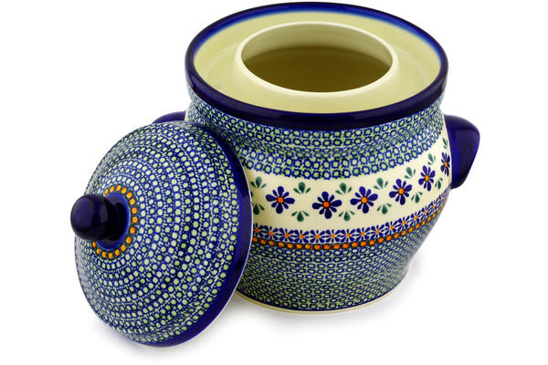 This Gingham Flowers 10" Fermenting crock pot was handmade and hand decorated in Boleslawiec, Poland by skilled artisans according to old traditional methods. This Polish stoneware is microwave, dishwasher, freezer, and oven safe up to 480°F. It does not contain lead or cadmium. It is part of the Gingham Flowers Collection.
