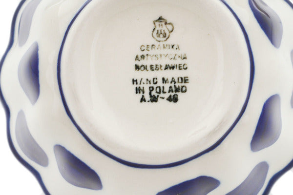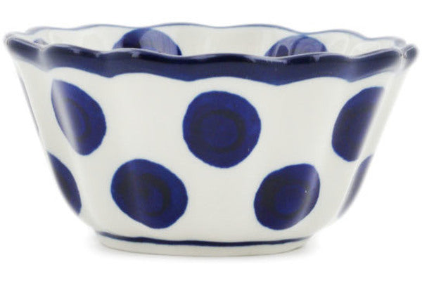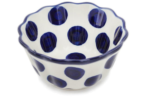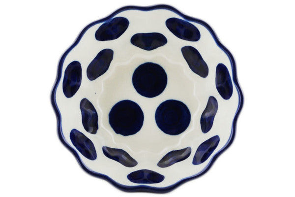 This Bold Blue Dots 4" Fluted Bowl was handmade and hand decorated in Boleslawiec, Poland by skilled artisans according to old traditional methods. This Polish stoneware is microwave, dishwasher, freezer, and oven safe up to 480°F. It does not contain lead or cadmium. It is part of the Bold Blue Dots Collection.