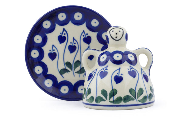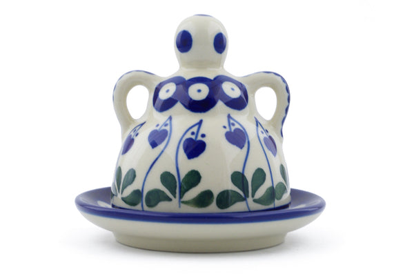 This Bleeding Heart Peacock 4" Mini Cheese Lady was handmade and hand decorated in Boleslawiec, Poland by skilled artisans according to old traditional methods. This Polish stoneware is microwave, dishwasher, freezer, and oven safe up to 480°F. It does not contain lead or cadmium. It is part of the Bleeding Heart Peacock Collection.