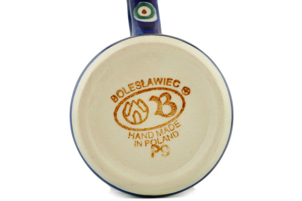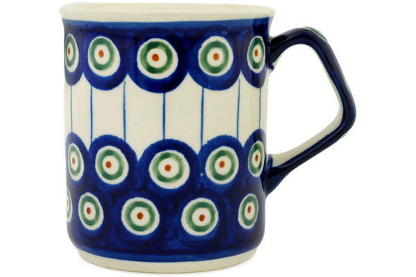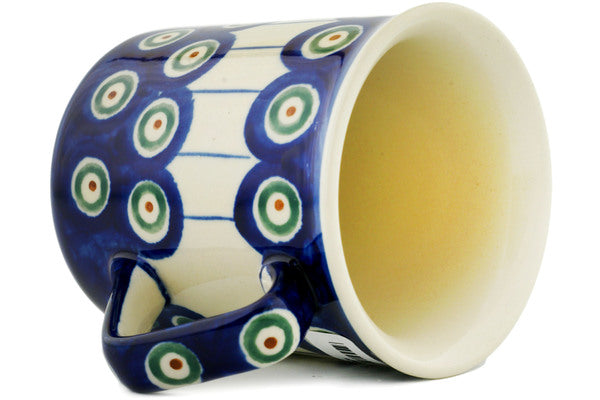 This Traditional Peacock 8 oz Mug was handmade and hand decorated in Boleslawiec, Poland by skilled artisans according to old traditional methods. This Polish stoneware is microwave, dishwasher, freezer, and oven safe up to 480°F. It does not contain lead or cadmium. It is part of the Traditional Peacock Collection.